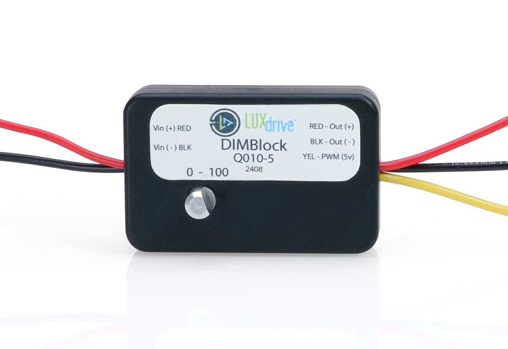 The DIMBlock converts 7-24V DC input into a stable 5V PWM signal, making it perfect for devices requiring precise dimming control.